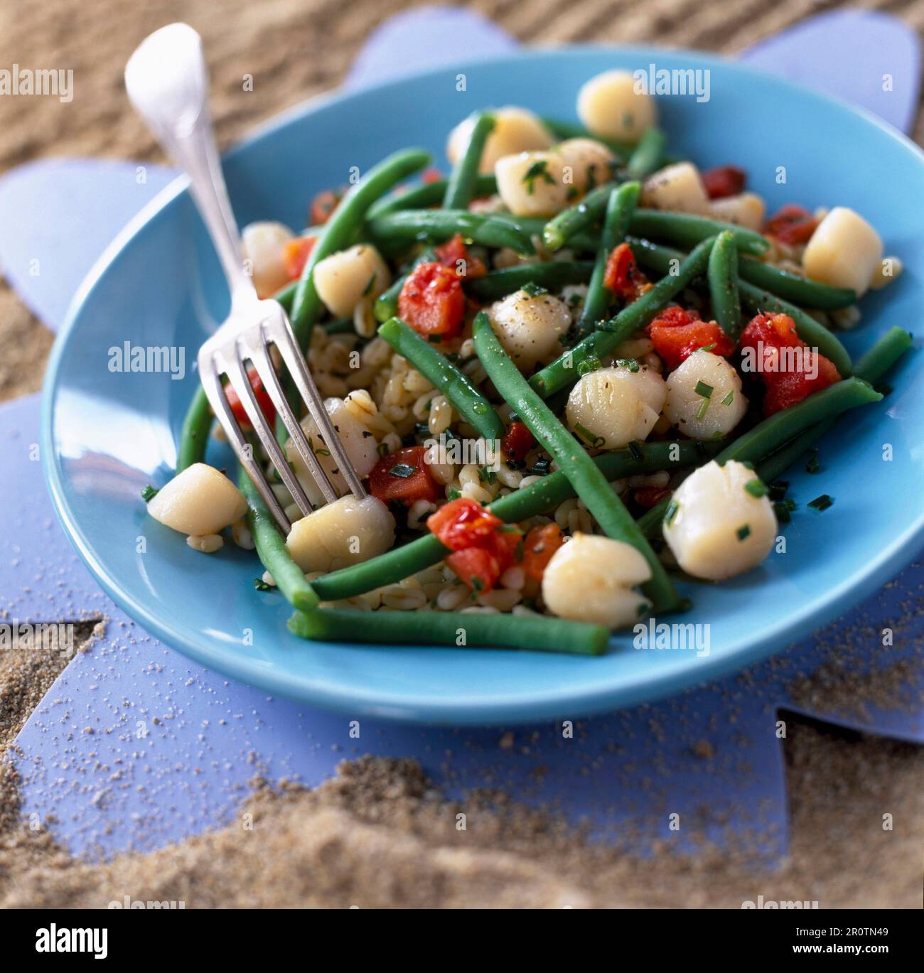 Scallop and green bean saffron flavored salad Stock Photo Alamy