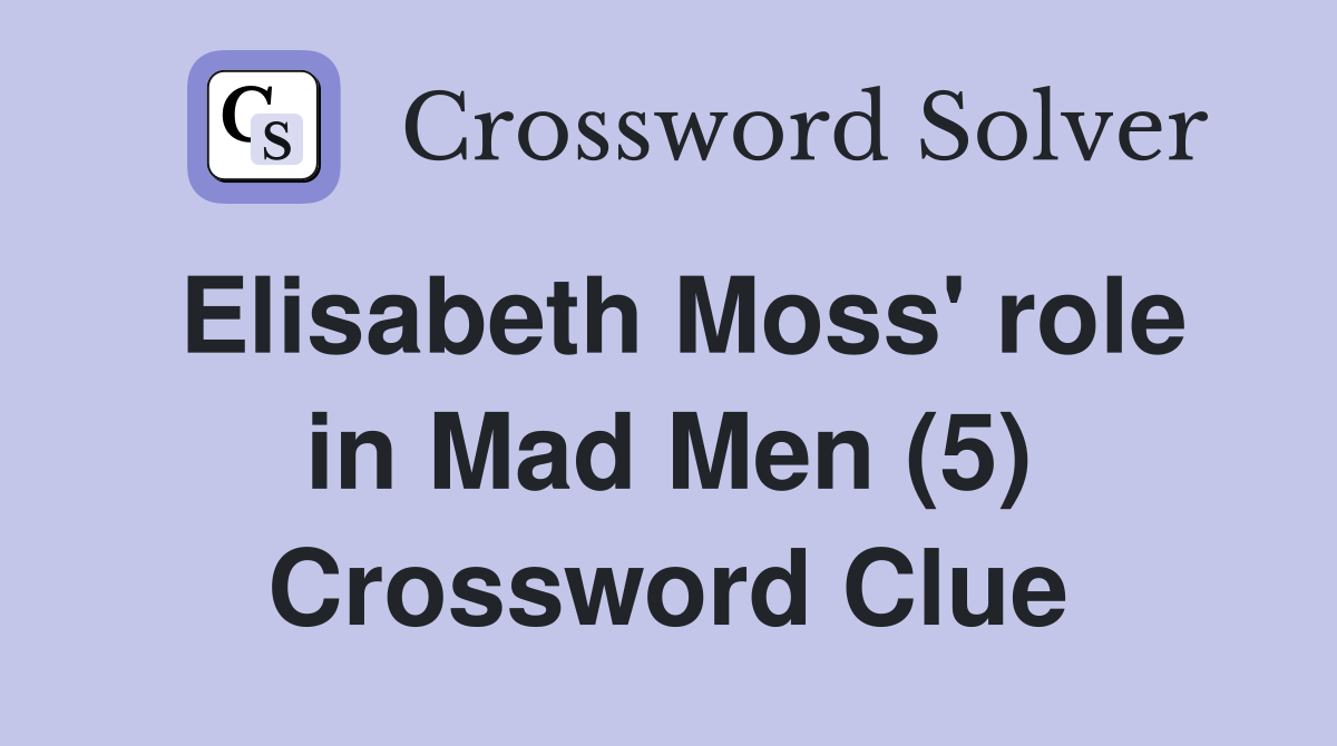 Elisabeth Moss #39 role in Mad Men (5) Crossword Clue Answers
