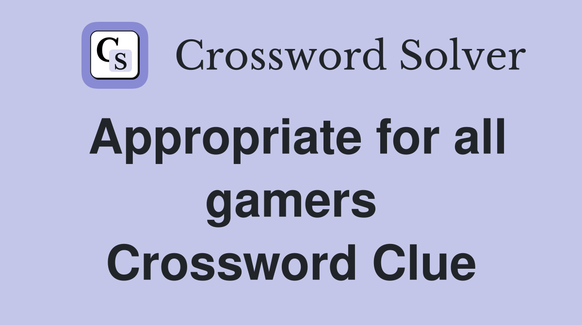Appropriate for all gamers Crossword Clue Answers Crossword Solver