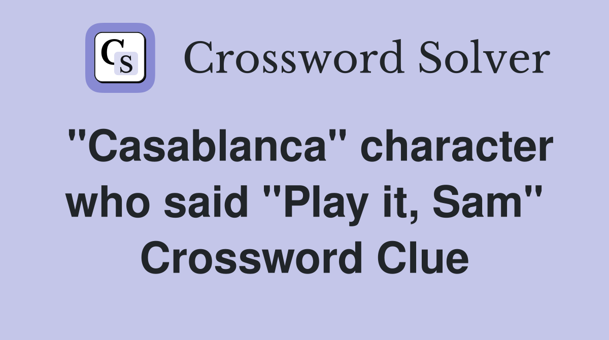 quot Casablanca quot character who said quot Play it Sam quot Crossword Clue Answers