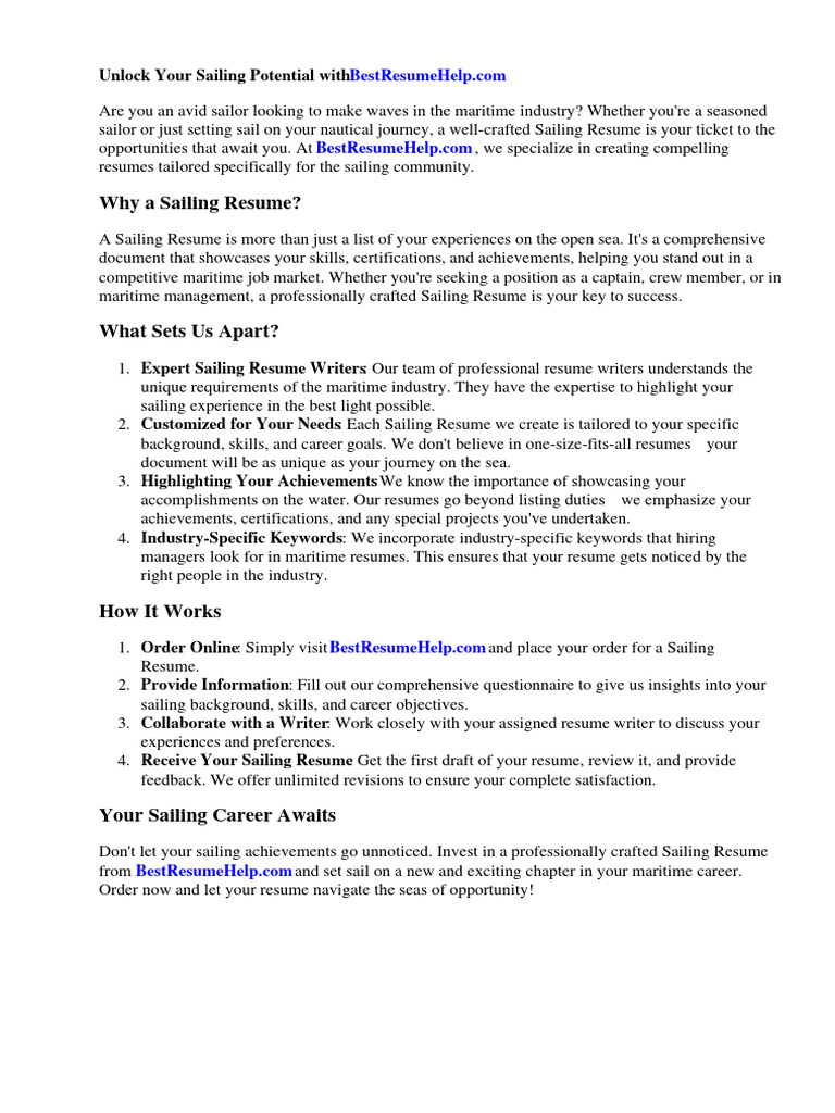 Sailing resume example guide Get job interviews