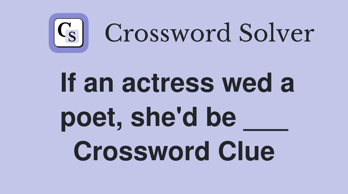 If an actress wed a poet she #39 d be Crossword Clue Answers