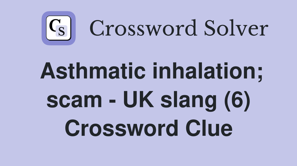 Asthmatic inhalation scam UK slang (6) Crossword Clue Answers