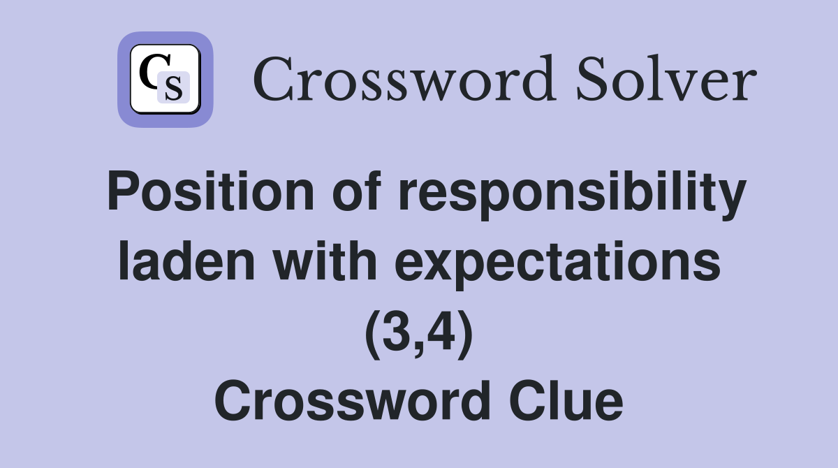 Position of responsibility laden with expectations (3 4) Crossword