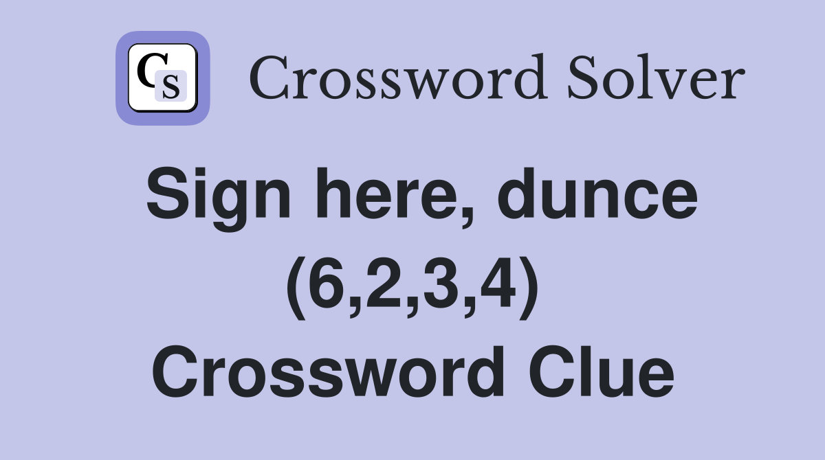 Sign here dunce (6 2 3 4) Crossword Clue Answers Crossword Solver