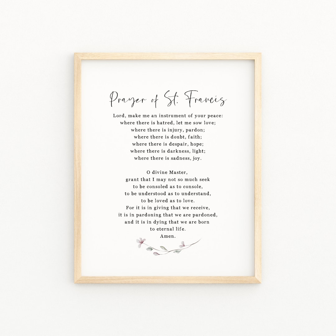 Prayer of St Francis Wall Art Printable Saint Francis Peace Prayer