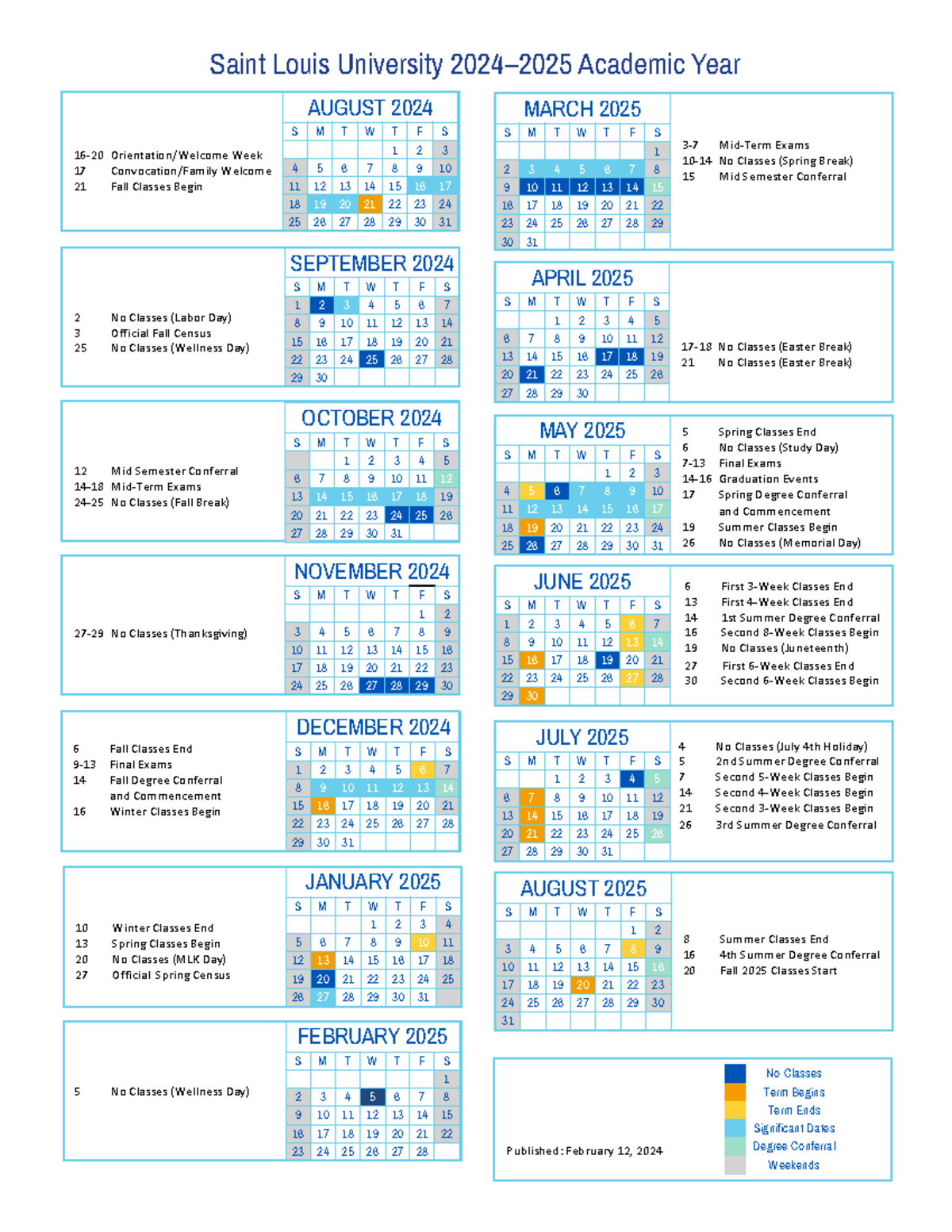 2024 2025 Academic Calendar for Saint Louis University Studocu