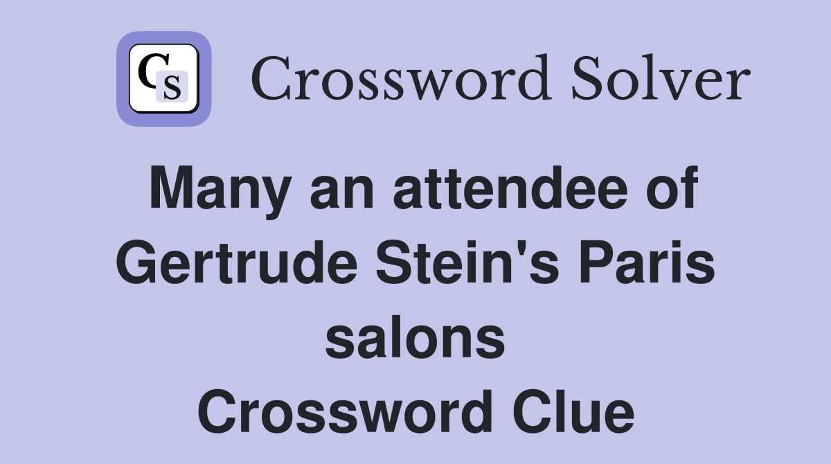 Many an attendee of Gertrude Stein #39 s Paris salons Crossword Clue