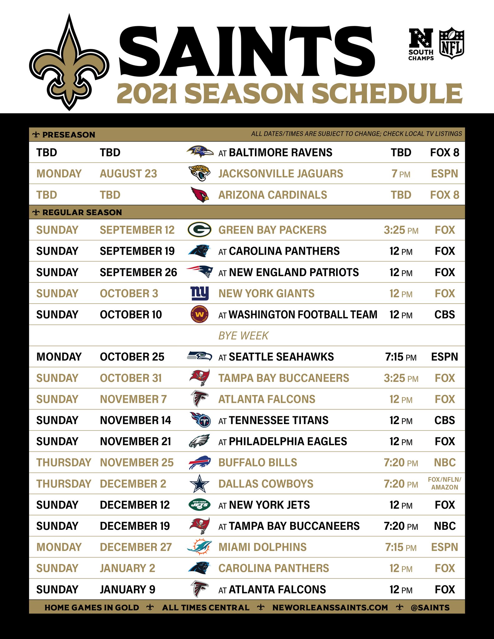 2025 Printable New Orleans Saints Schedule: Free Printable PDF