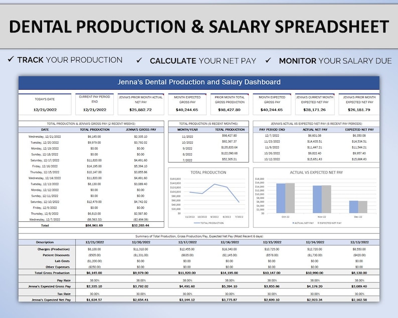 Dental Production Excel Dental Office Dental Spreadsheet Dental Salary