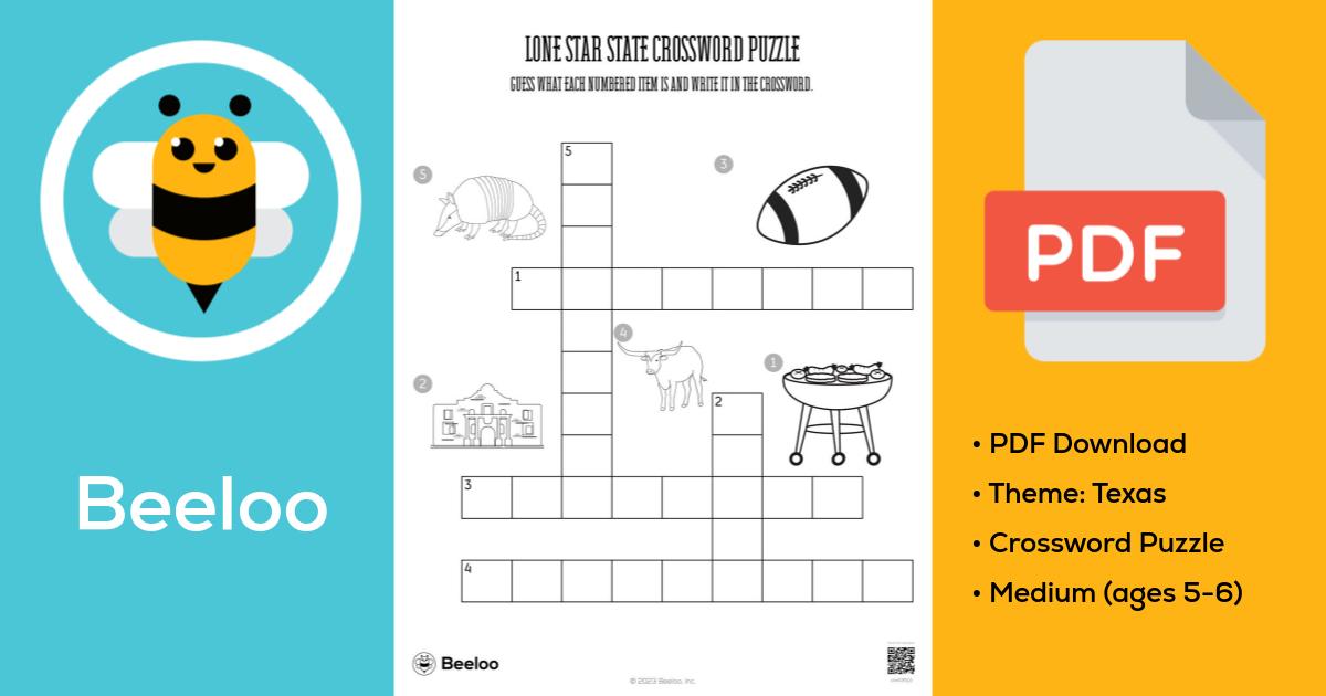 Lone Star State Crossword • Beeloo Printable Crafts and Activities for Kids