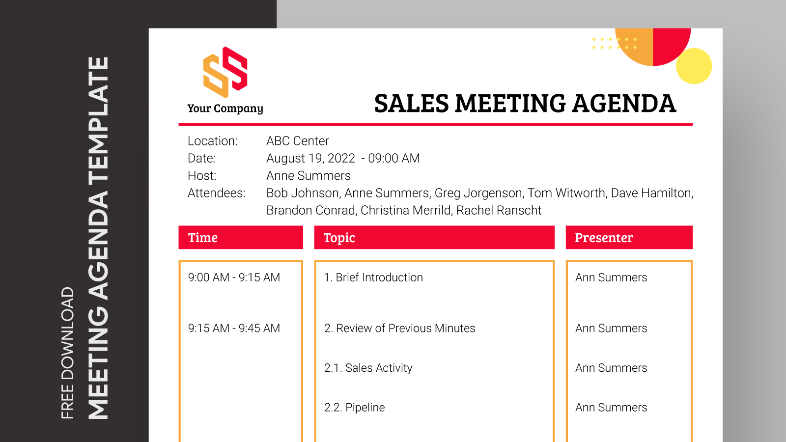 Free Sales Meeting Agenda Format Template to Edit Online