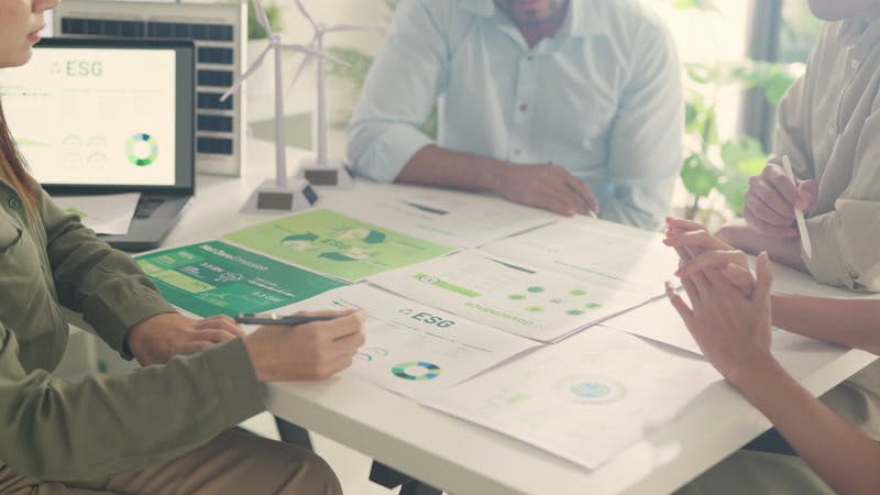 Focused Business Team Analyzing Sales Together Reviewing Paper Reports