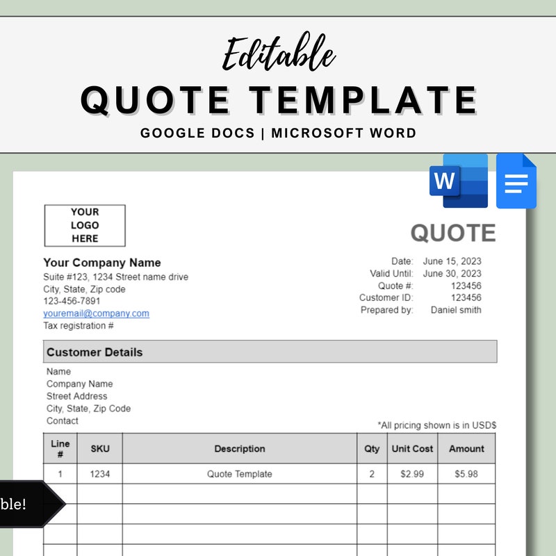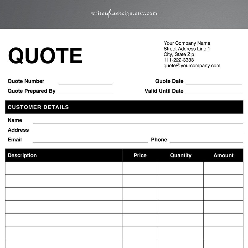 Quote Template Doc Etsy