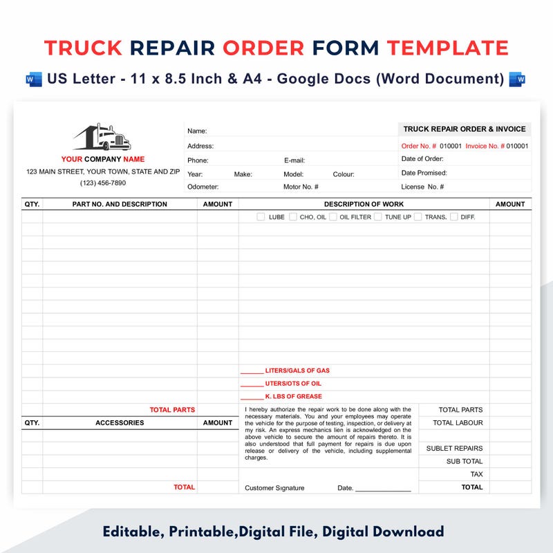 Sales Order Form in Word and Pdf formats