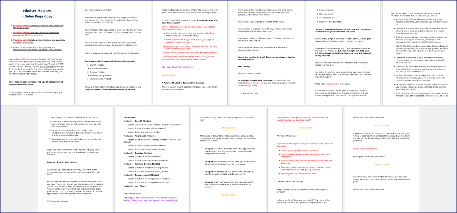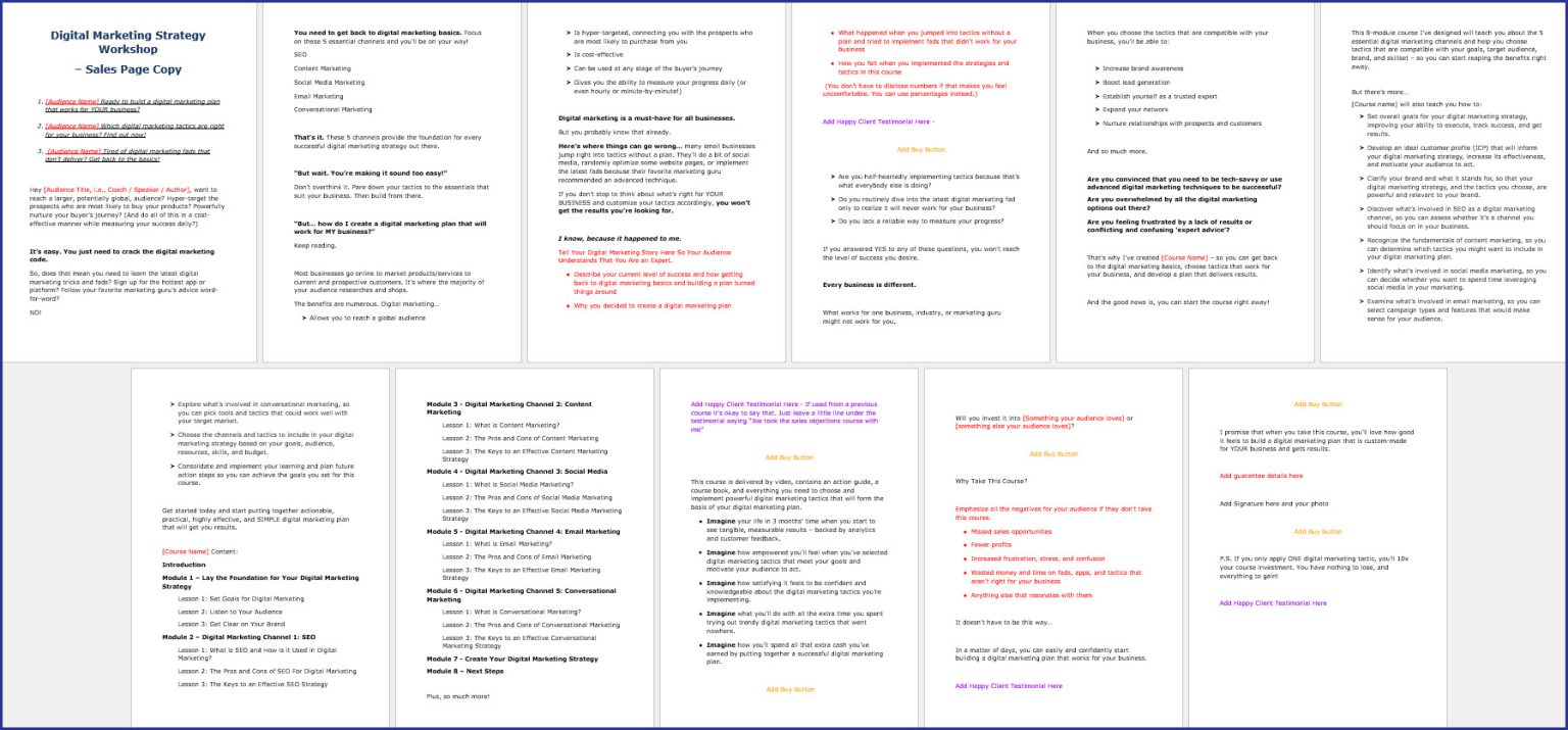 Sales Page Template Mini Sales Page Copy Template Online Course
