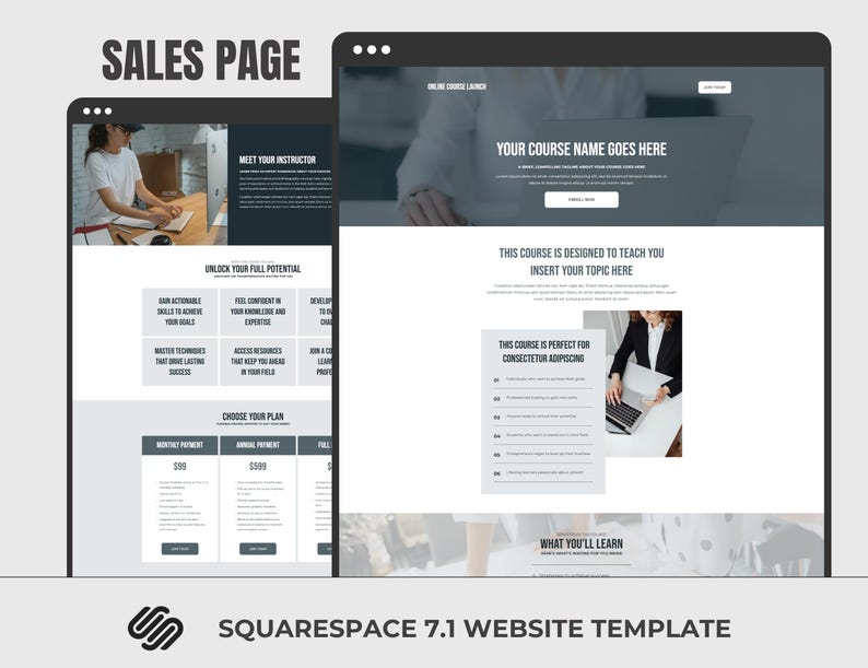 Sales Page Template Squarespace 7 1 Online Course Launch Etsy