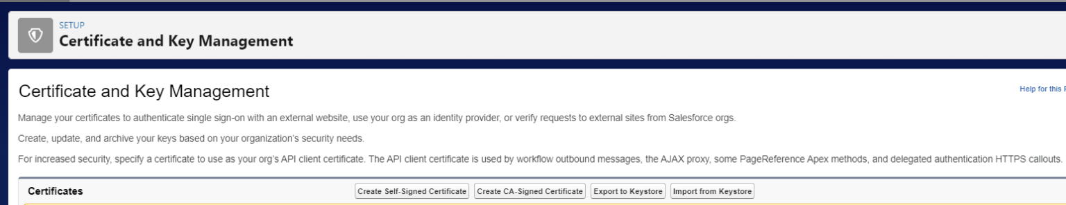 SFDC: How to create Self signed certificate and use it in Identity