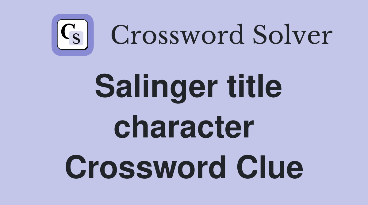 Name in a Salinger title Crossword Clue Answers Crossword Solver