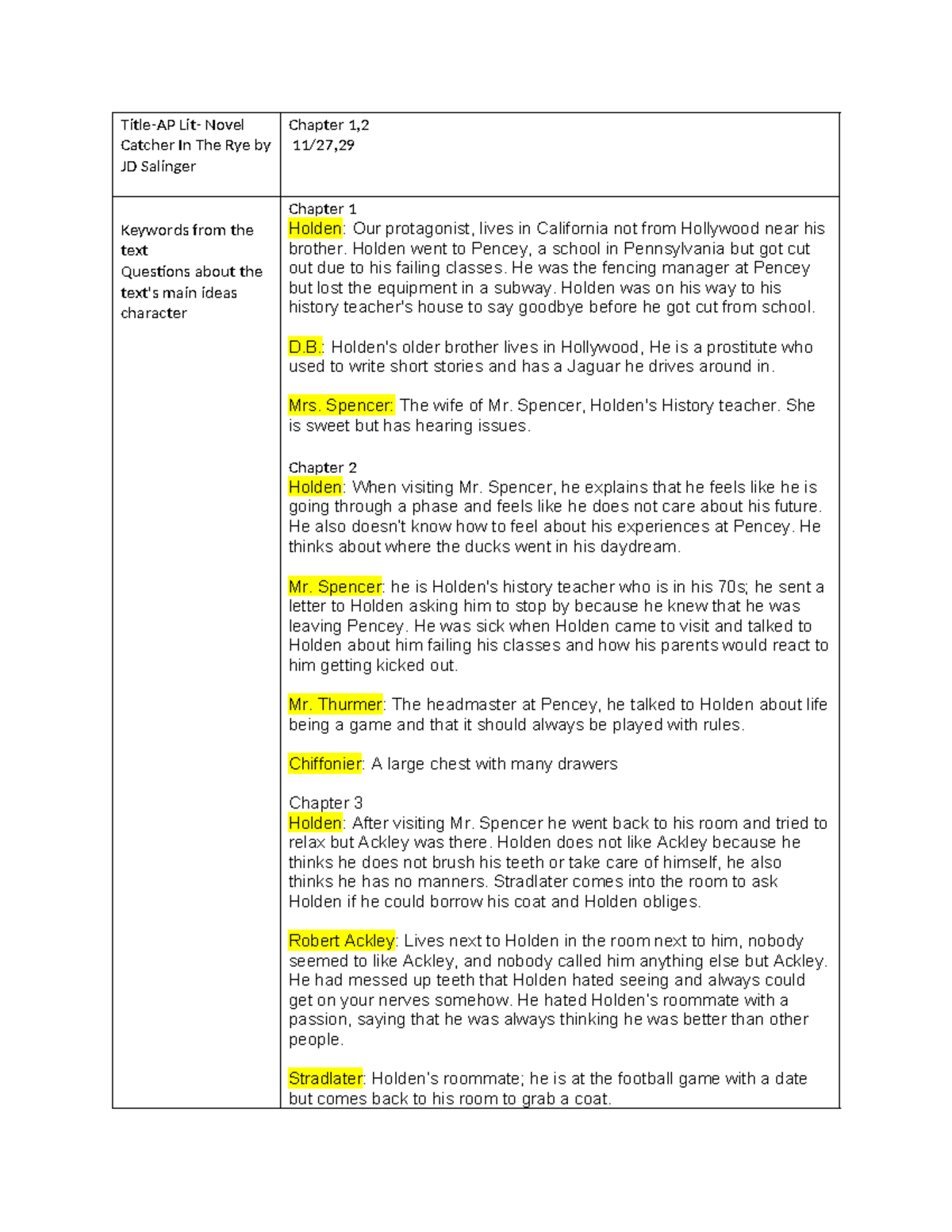Cornell Notes Title AP Lit Novel Catcher In The Rye by JD Salinger