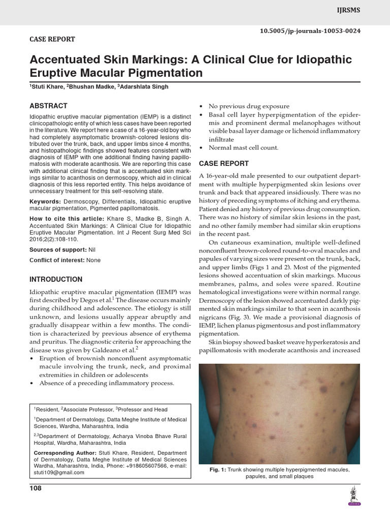 Accentuated Skin Markings A Clinical Clue For Idio PDF Clinical