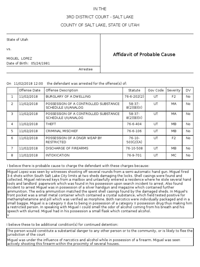 Affidavit of Probable Cause: in The 3Rd District Court Salt Lake