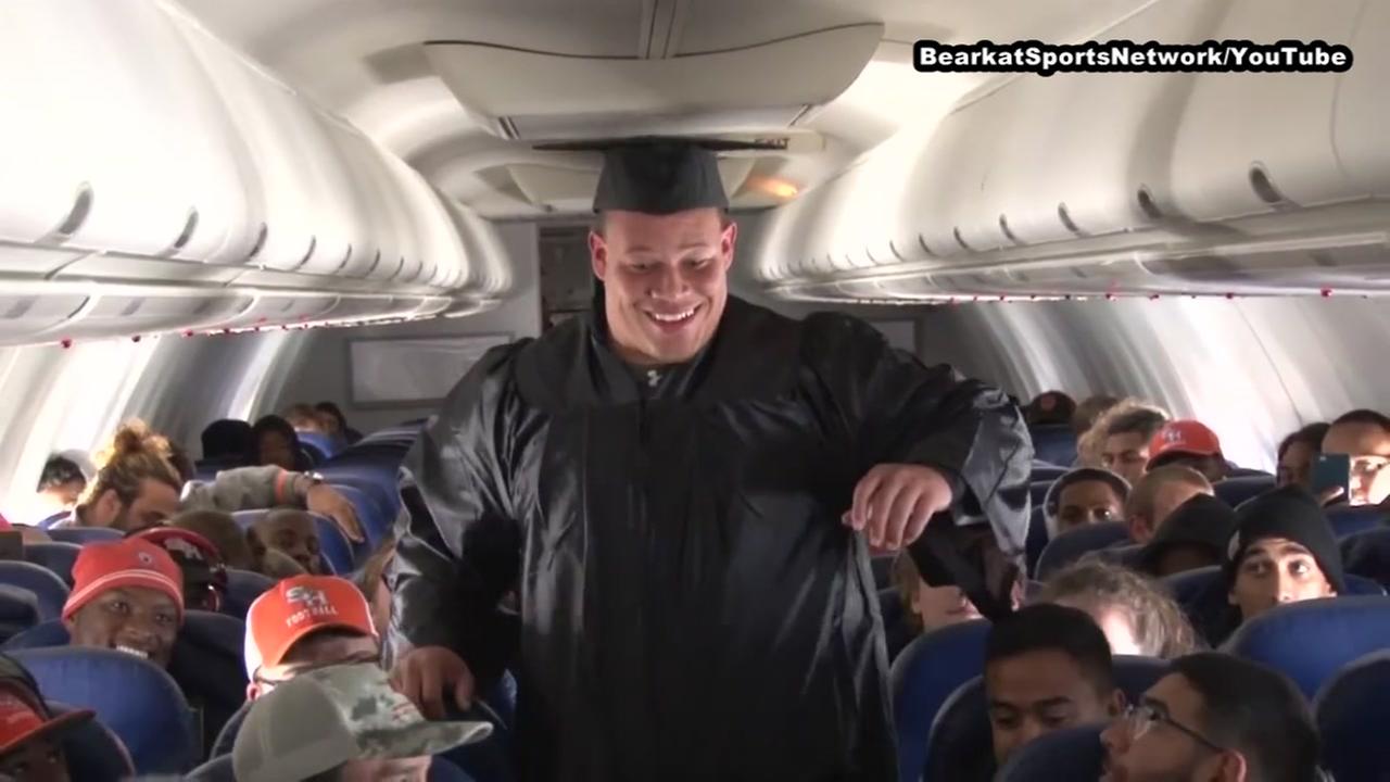 Sam Houston State defensive back Jaylen Thomas comes down with a