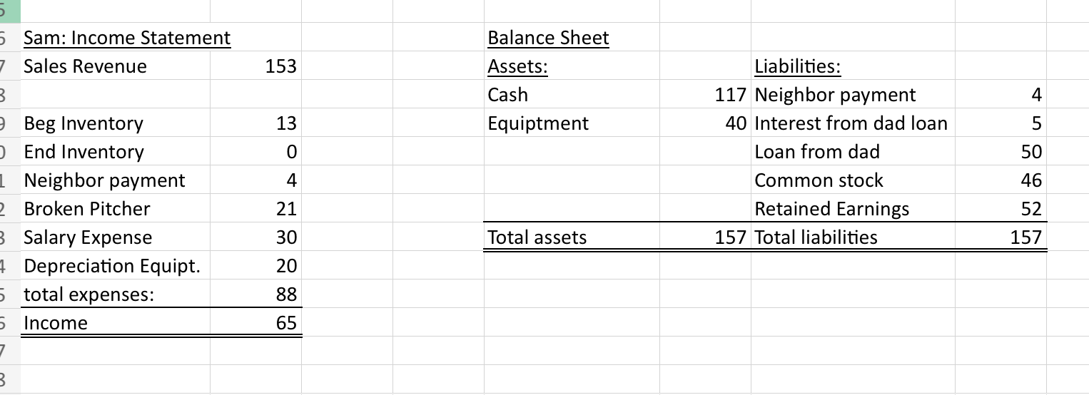 Sam: Income Statement Balance Sheet Chegg com