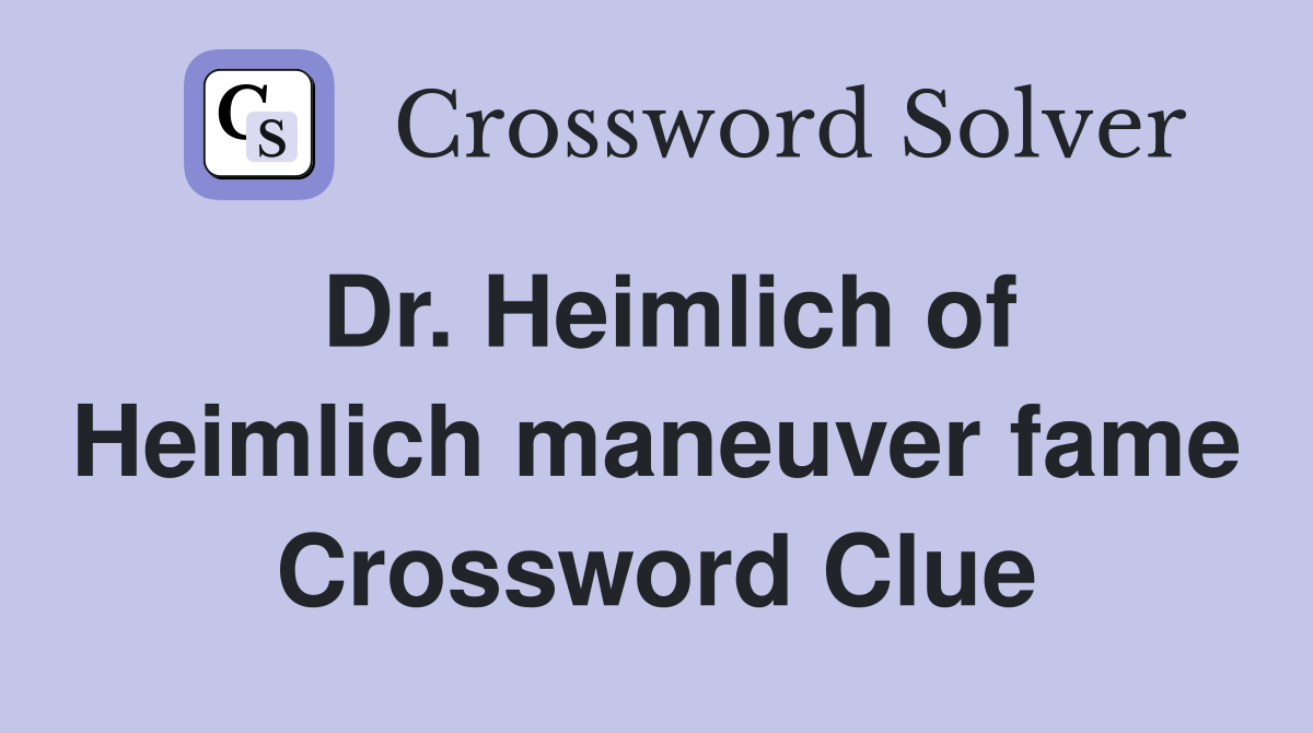 Dr Heimlich of Heimlich maneuver fame Crossword Clue Answers