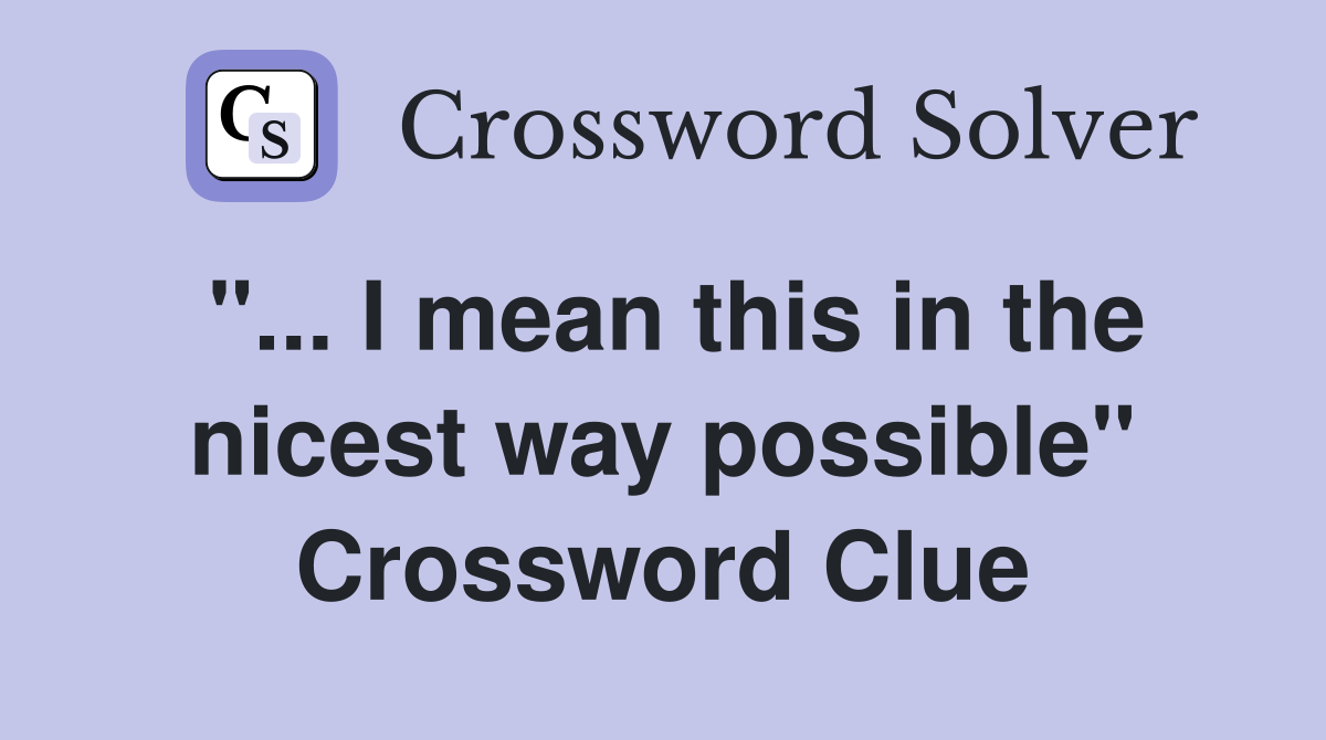 I mean this in the nicest way possible quot Crossword Clue Answers