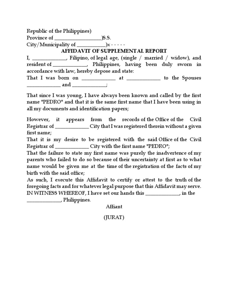 Affidavit to Supply Name (Sample) Affidavit Birth Certificate