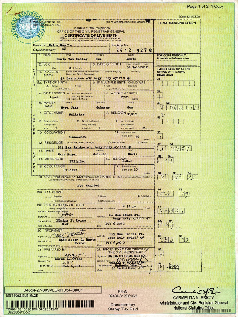 Philippines birth certificate template Birth certificate template