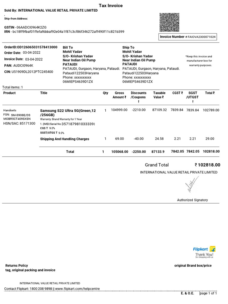 Samsung s23 Ultra Invoice PDF Taxation Government Finances