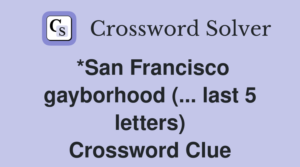 *San Francisco gayborhood ( last 5 letters) Crossword Clue Answers
