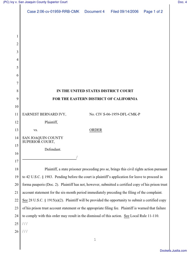 (PC) Ivy v San Joaquin County Superior Court Document No 4 PDF
