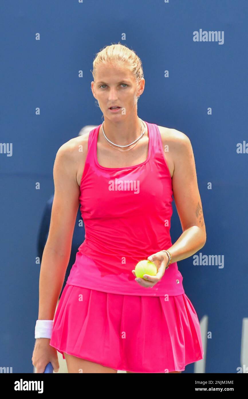 SAN JOSE CA AUGUST 01: Karolina Pliskova (CZE) gets ready for a