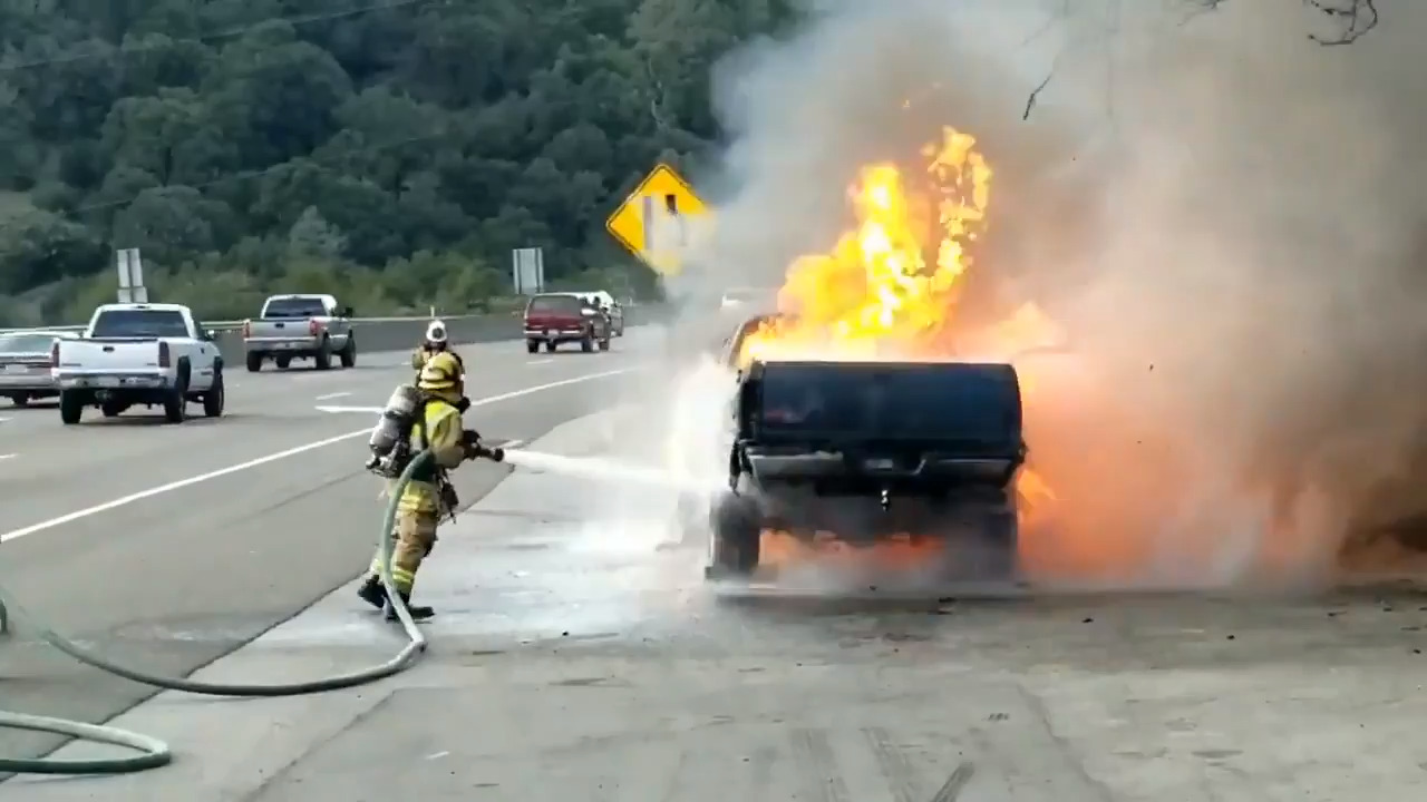 SLO CA Highway 101 car fire slows Cuesta Grade traffic San Luis