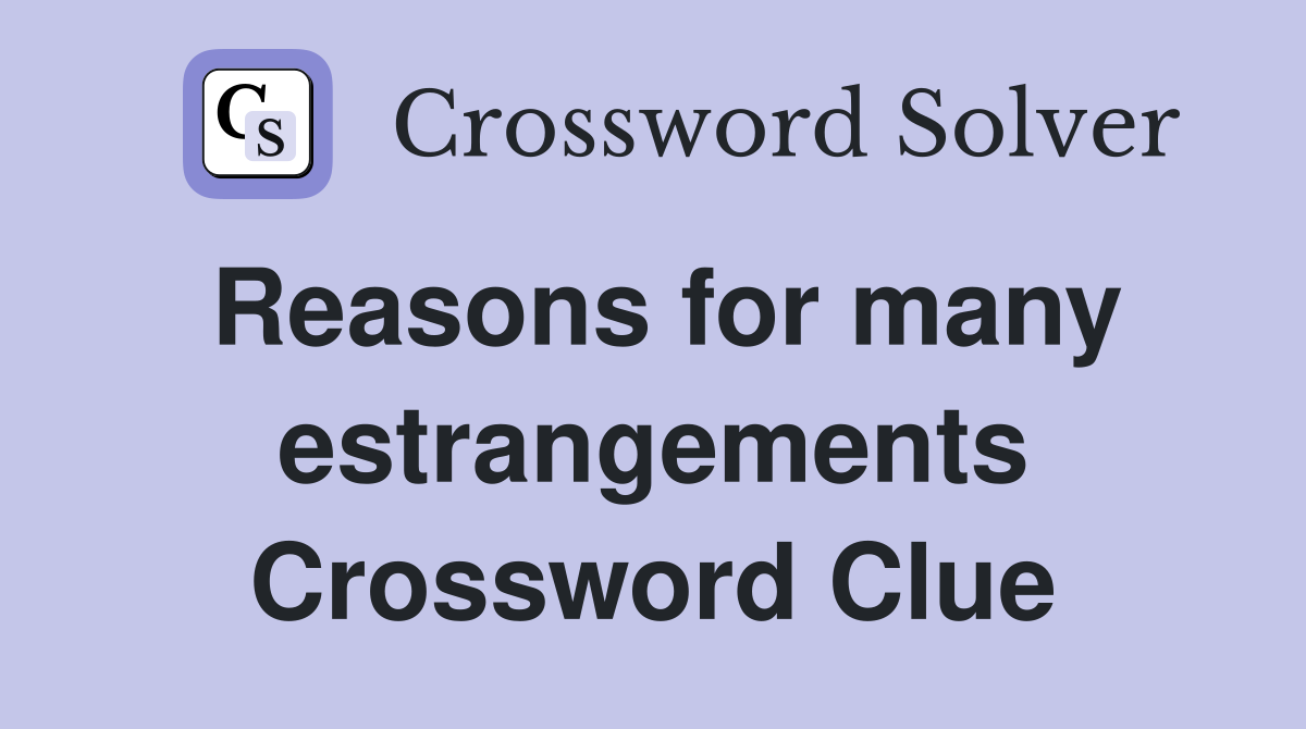 Reasons for many estrangements Crossword Clue Answers Crossword Solver