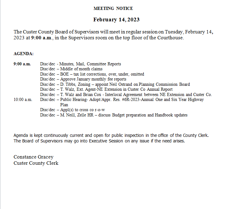 Board of Supervisors Agenda: February 14 Sandhills Express