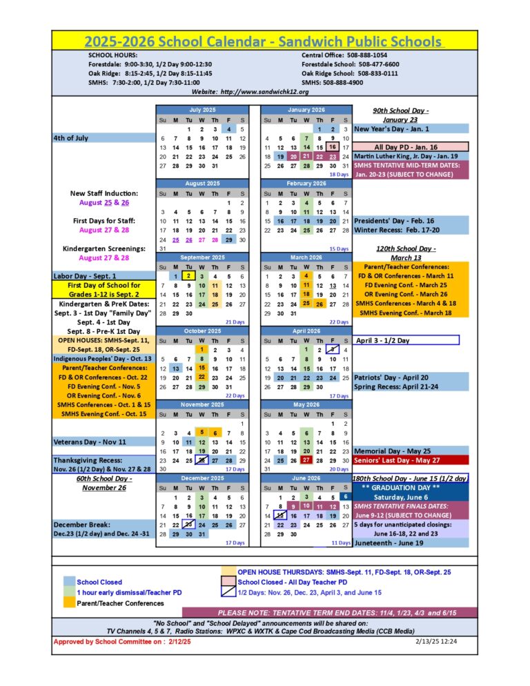 Sandwich public schools calendar 25 26 Revised PDF EduCounty