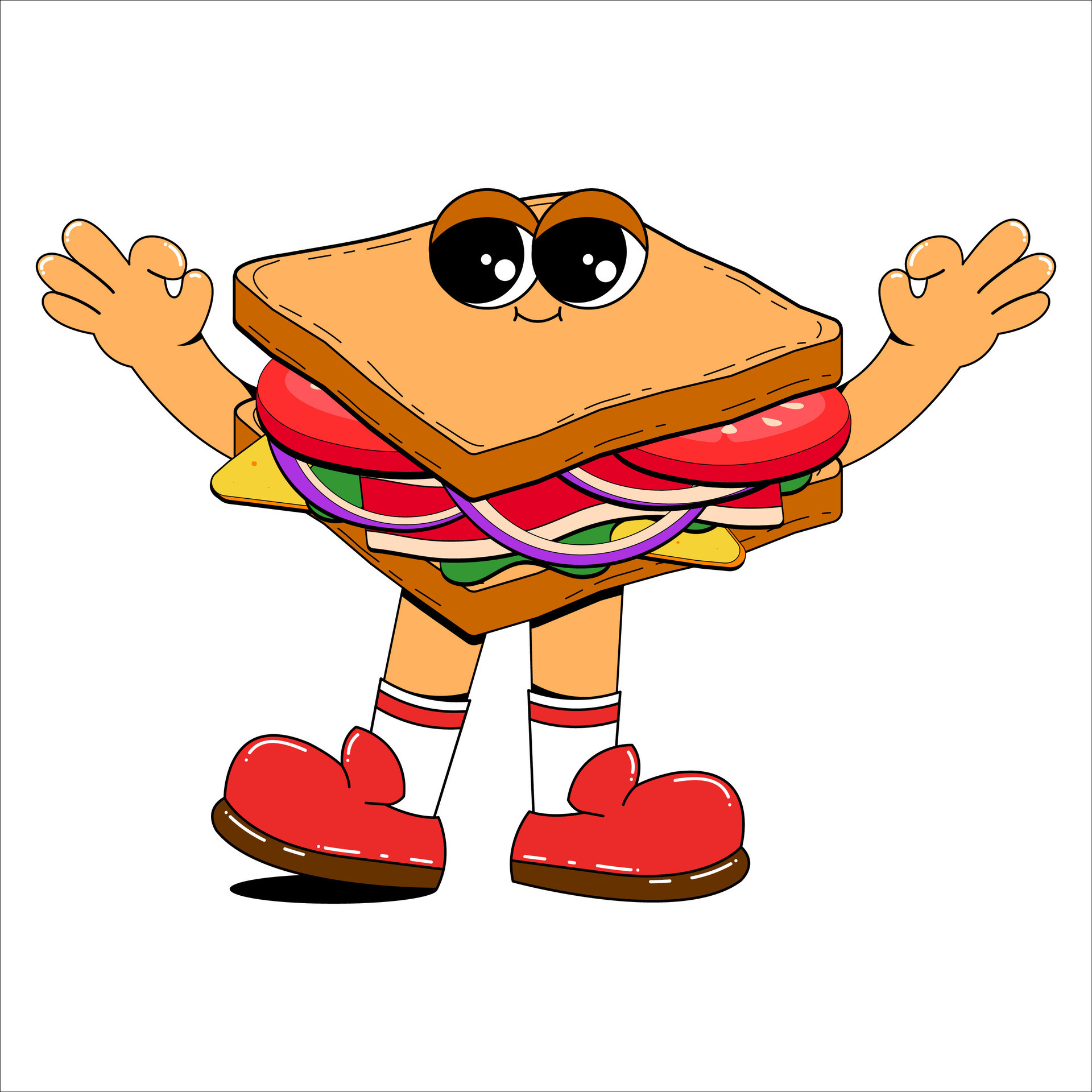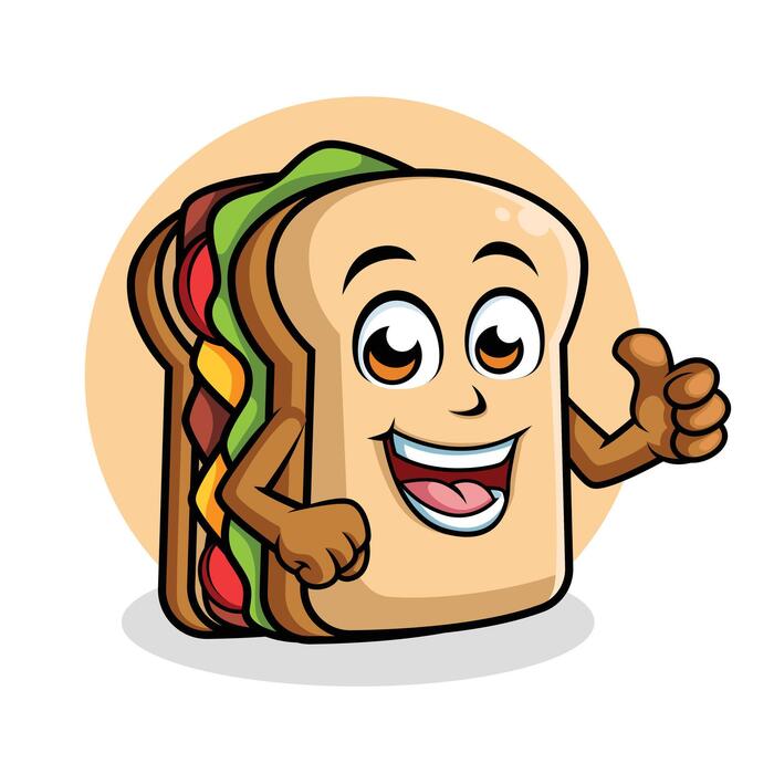 A cartoon drawing of a sandwich with a big smile on his face Premium
