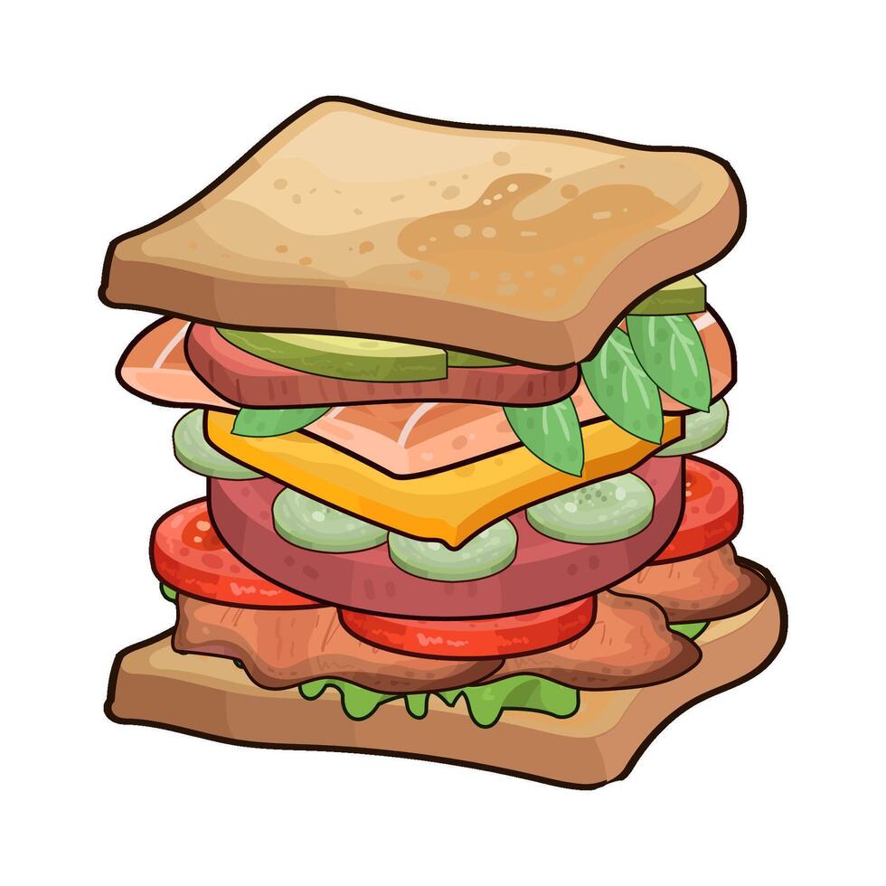 sandwich vector in white background vector illustration cartoon Stock