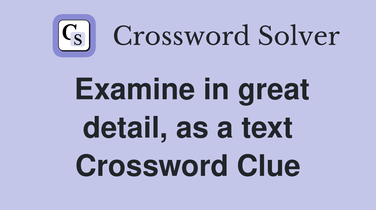 Examine in great detail as a text Crossword Clue Answers Crossword