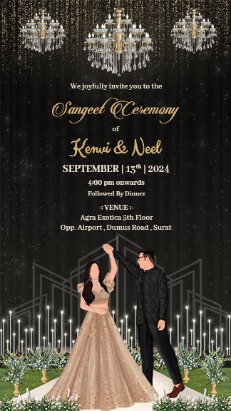 Sangeet Sandhya Ceremony invitation card in english with night view