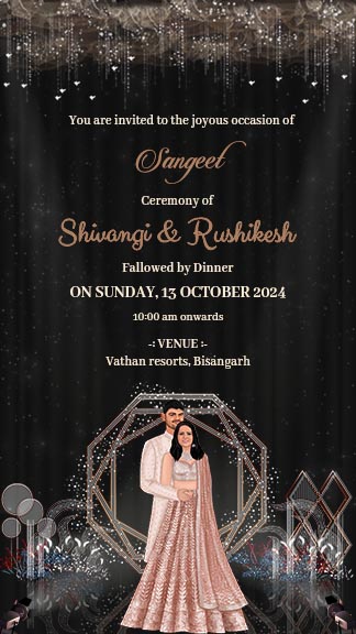 Beautiful Sangeet Ceremony Invitation E card Caricature Theme Sangeet