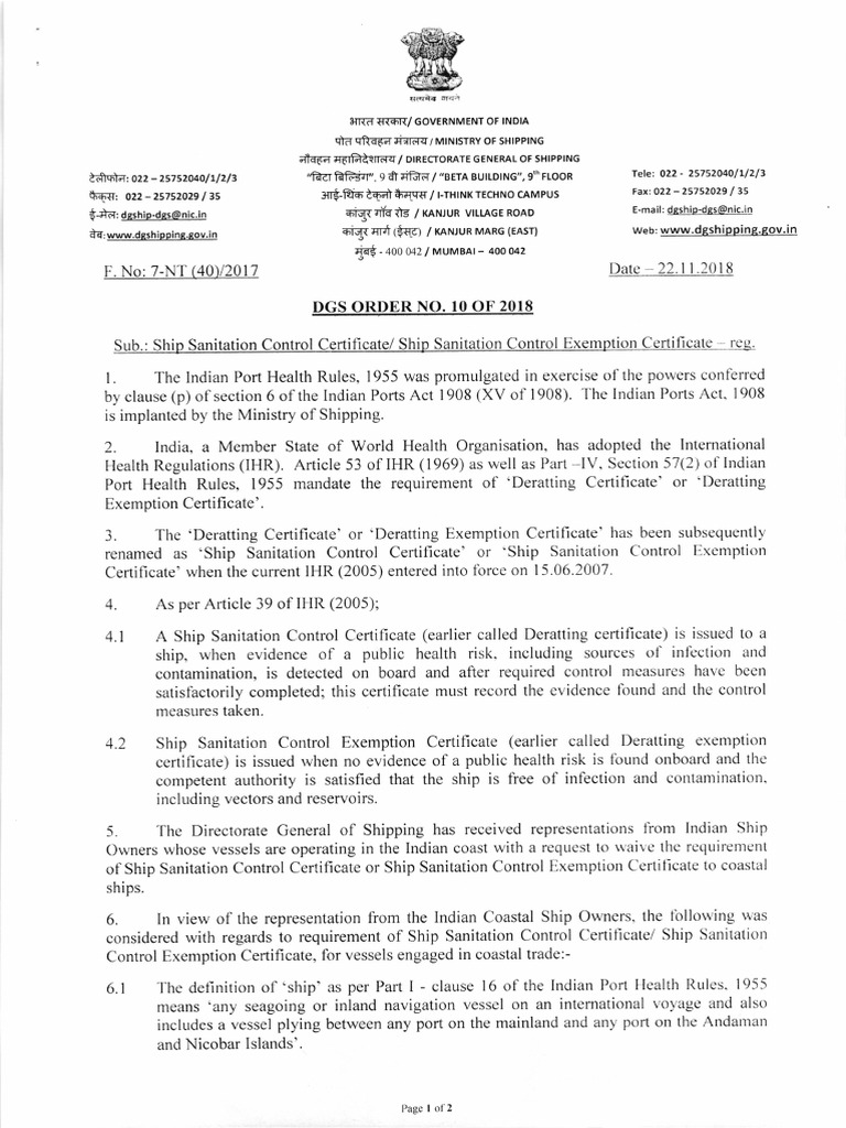 DG Ship Sanitation Controll Certificate PDF Ships Port