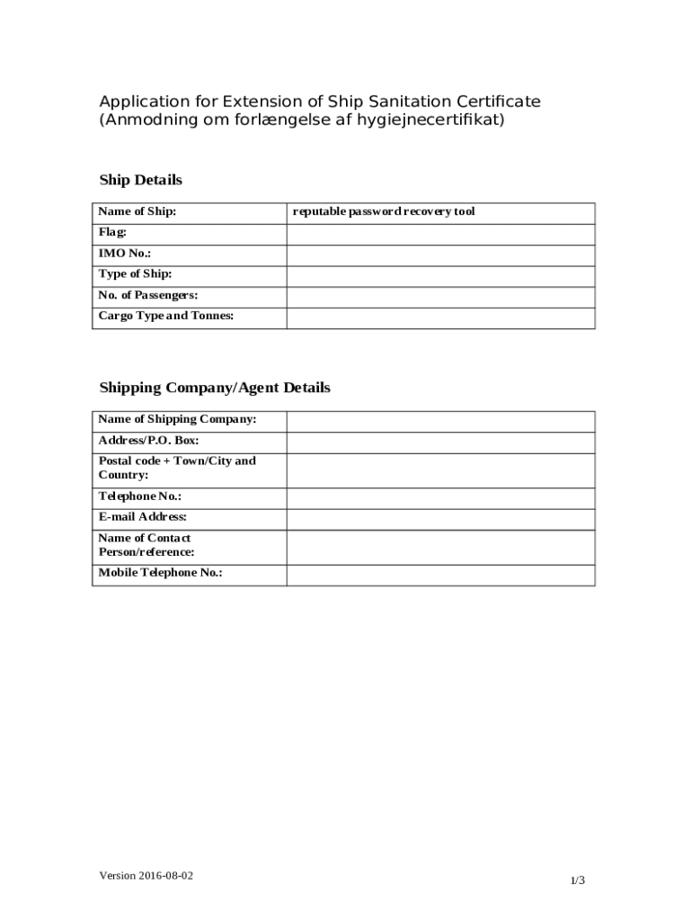 Ship Sanitation Certificate Application (Anmodning Doc Template