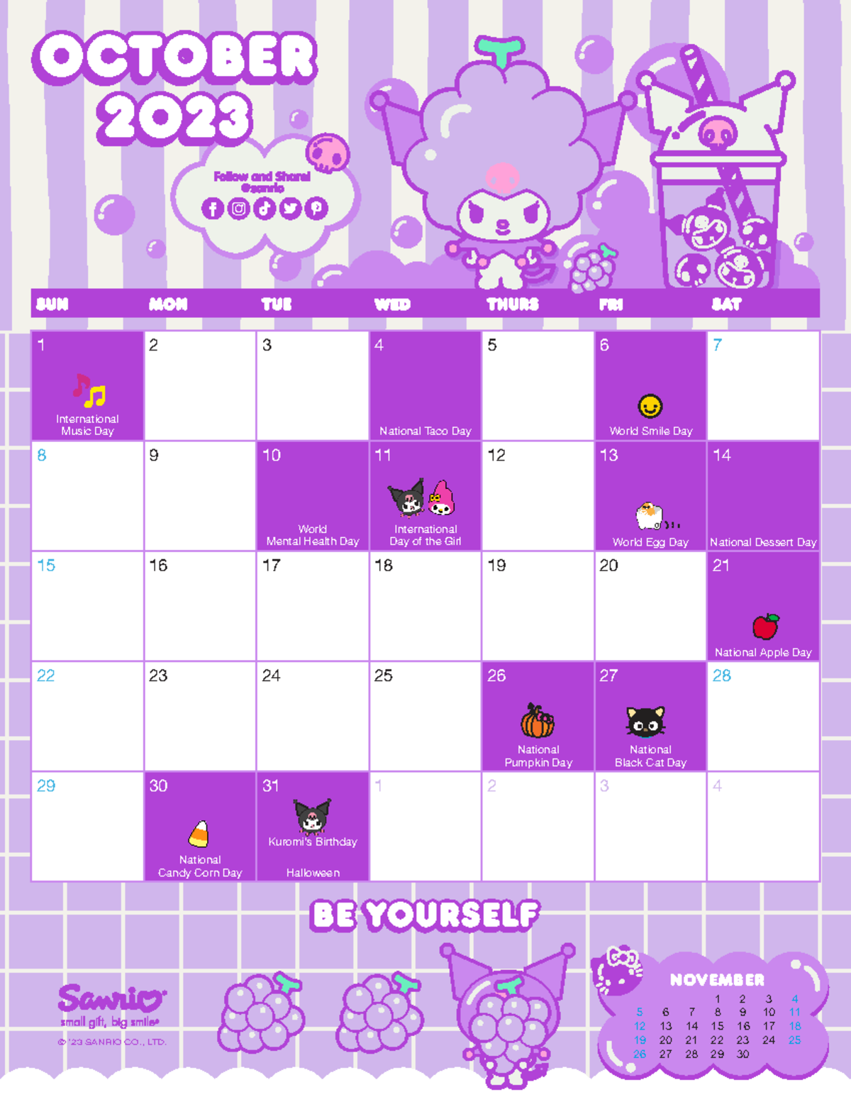 10 October 1F41 © 23 SANRIO CO LTD 29 30 31 1 2 3 4 22 23 24 25