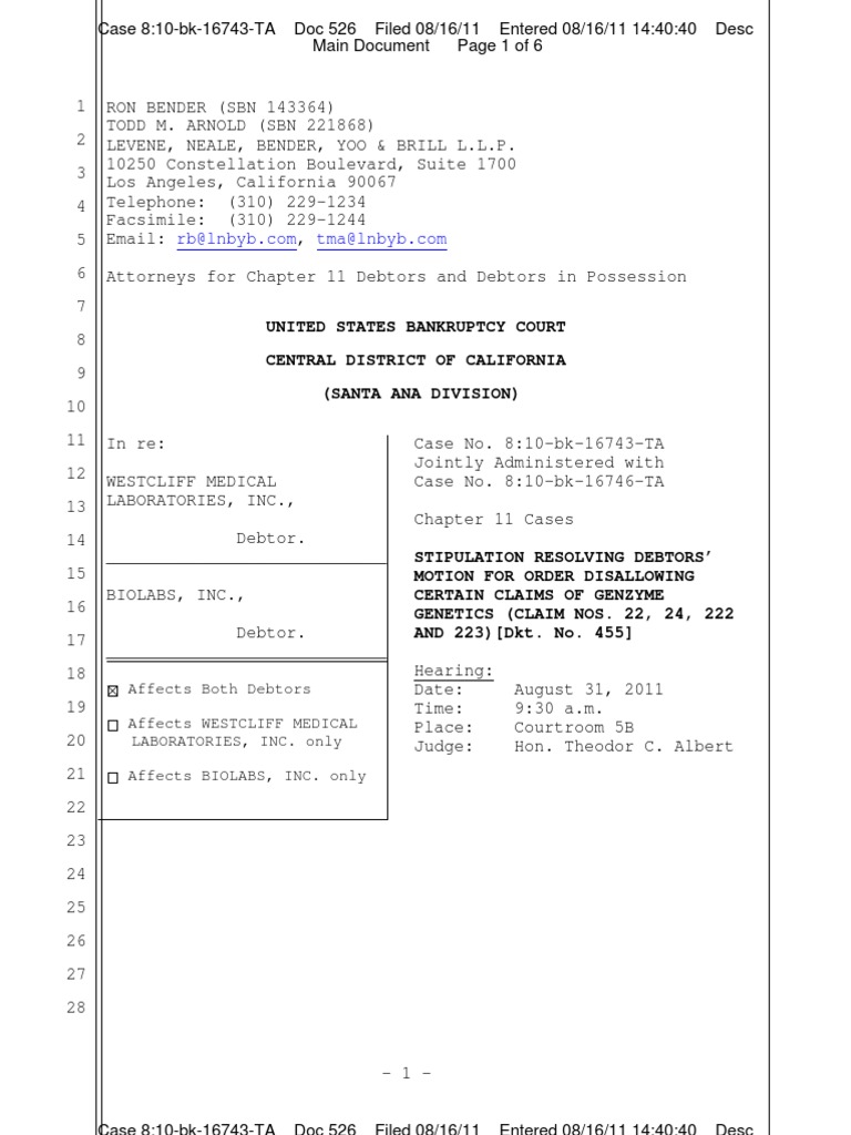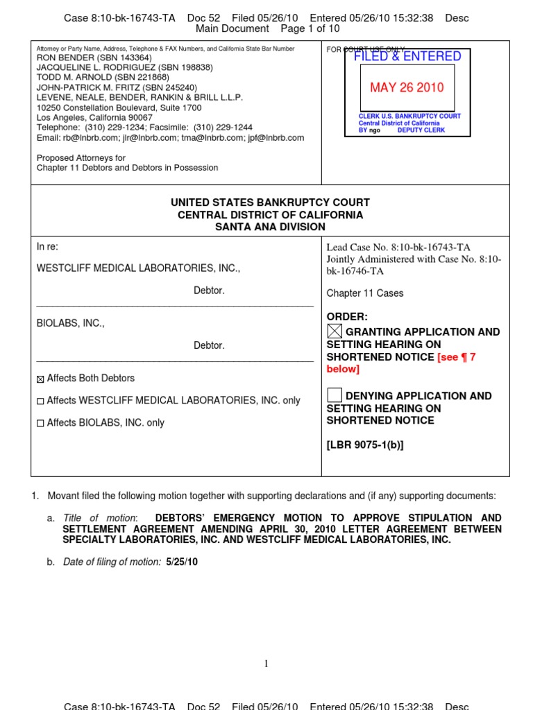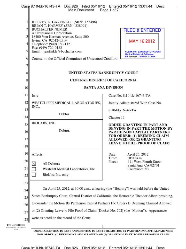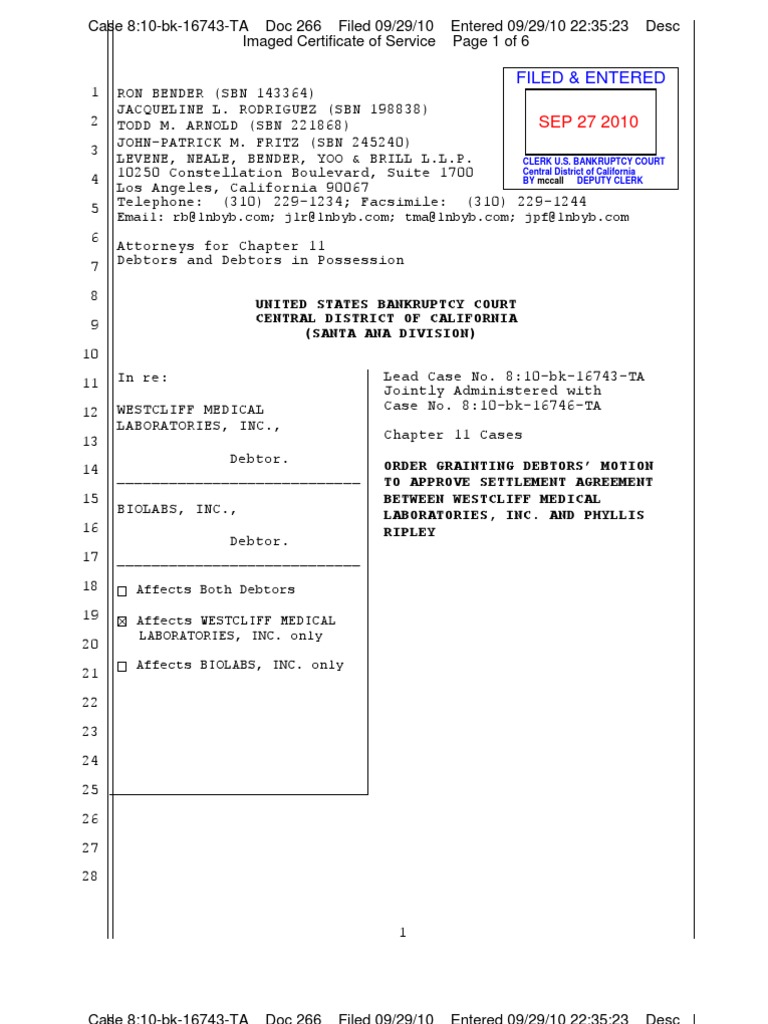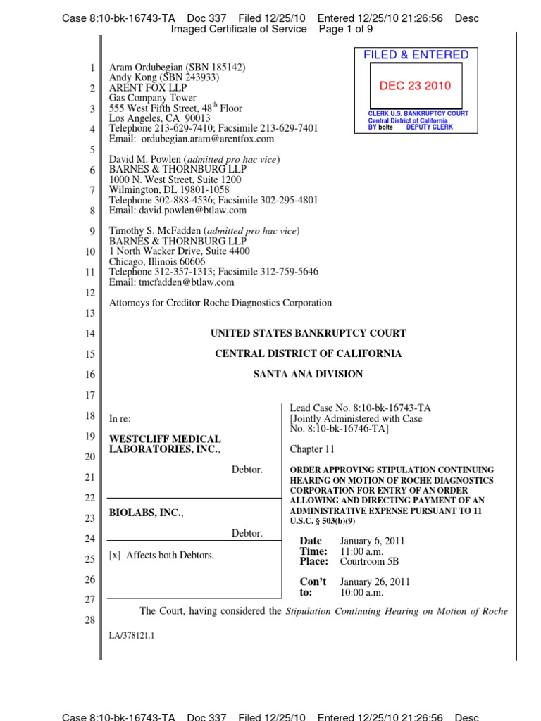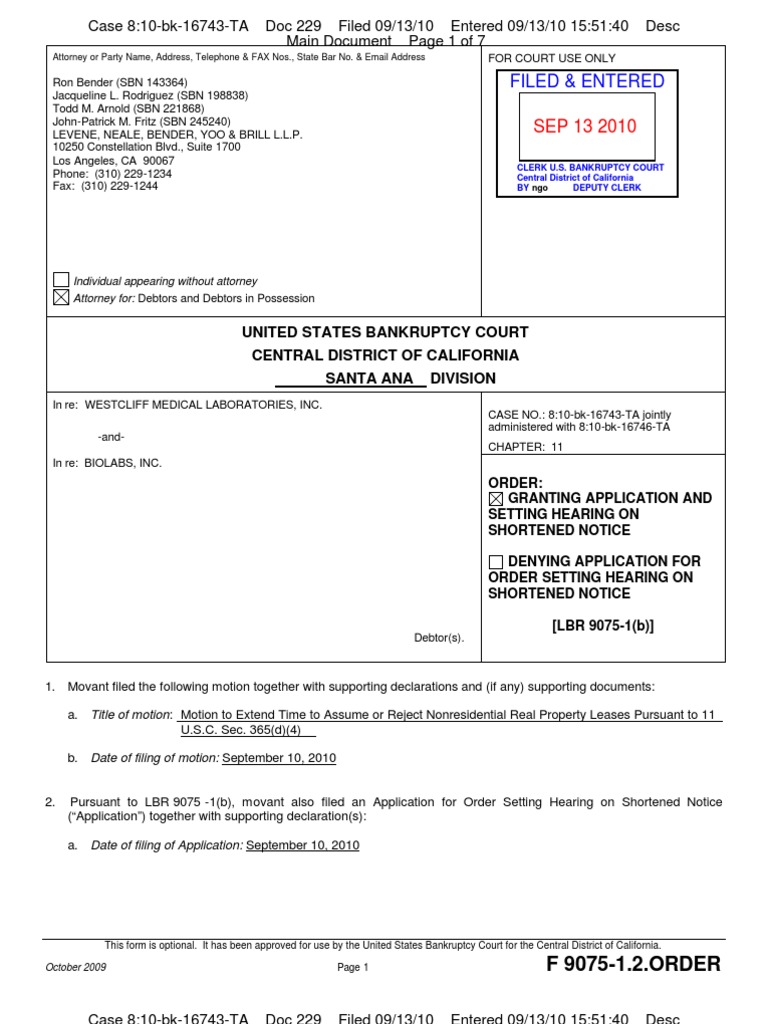 Filed Entered: United States Bankruptcy Court Central District of