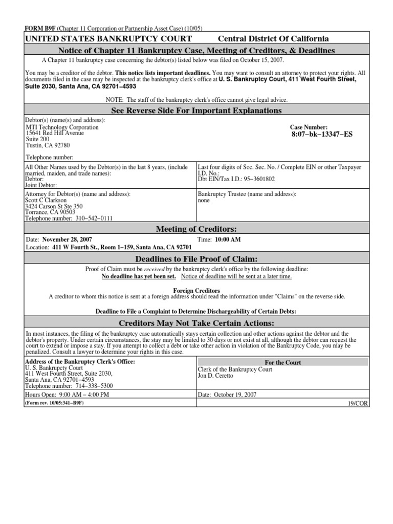 United States Bankruptcy Court Central District Of California Santa Ana